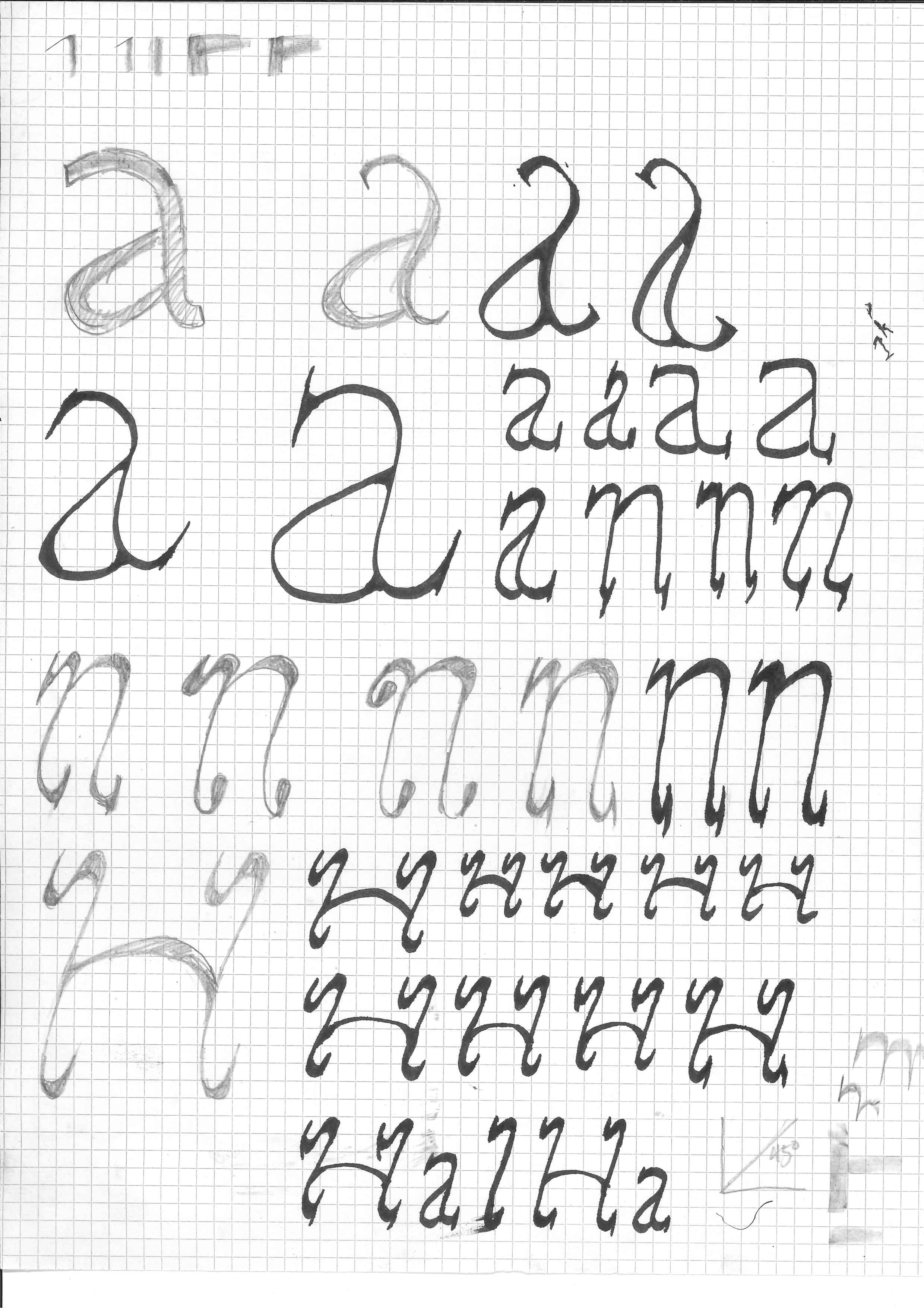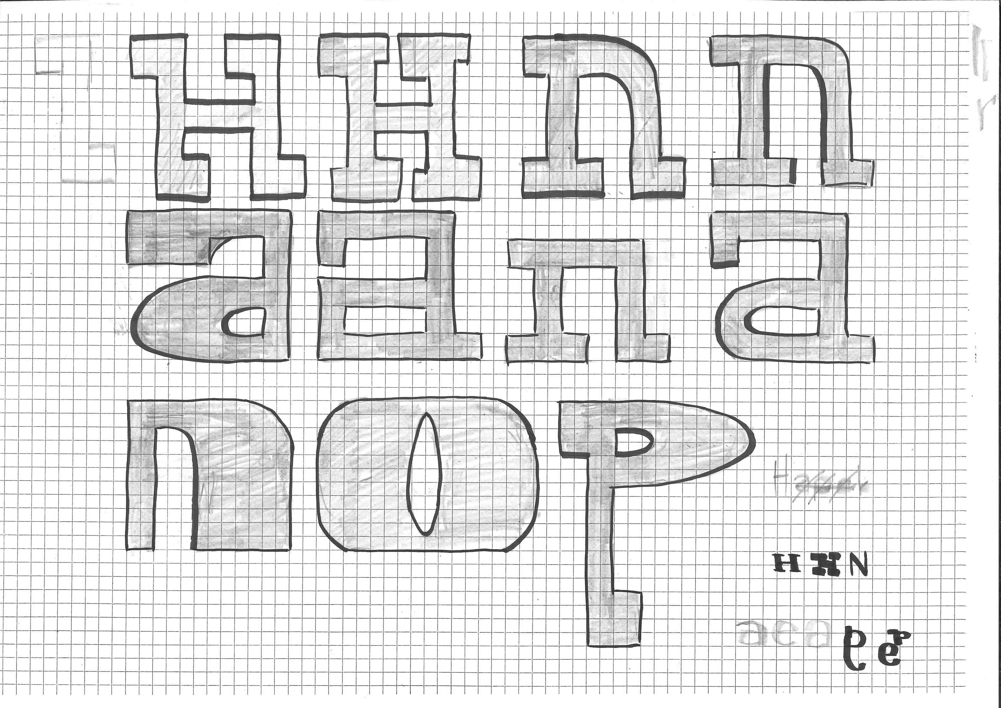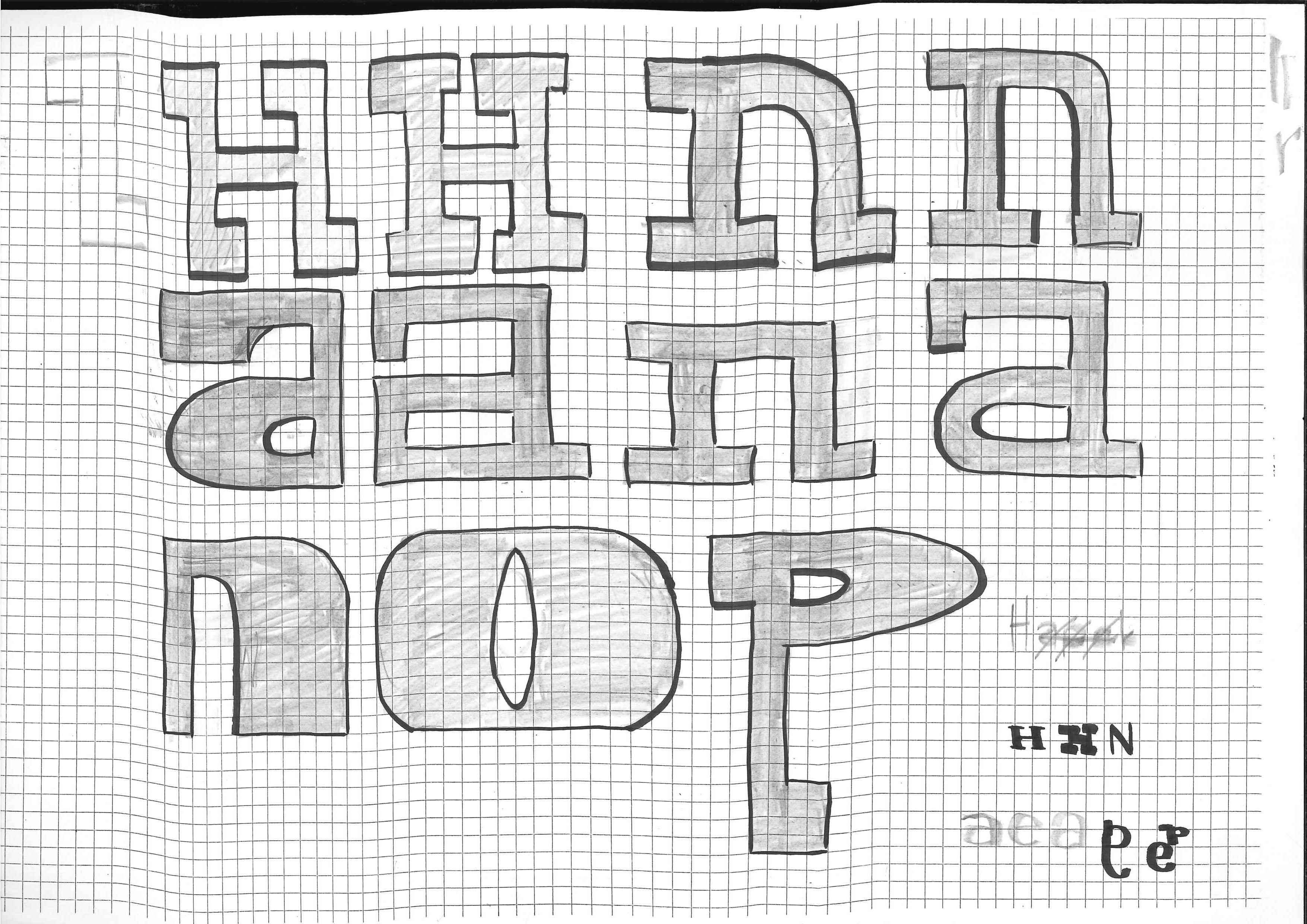 Die Schrift, welche ich designt habe, sieht stark und auffällig aus. Die dicken, dunklen Buchstaben wirken schwer, aber trotzdem spannend. Durch die runden Formen und kleinen Unterschiede merkt man, dass sie von Hand gemacht ist. Sie wirkt gleichzeitig ordentlich und doch ein bisschen frei. Manche Buchstaben erinnern an alte Schilder oder Maschinen, aber sie hat trotzdem etwas Eigenes. Mir gefällt, dass sie kraftvoll aussieht, ohne zu streng zu sein – irgendwie ruhig, aber trotzdem lebendig.