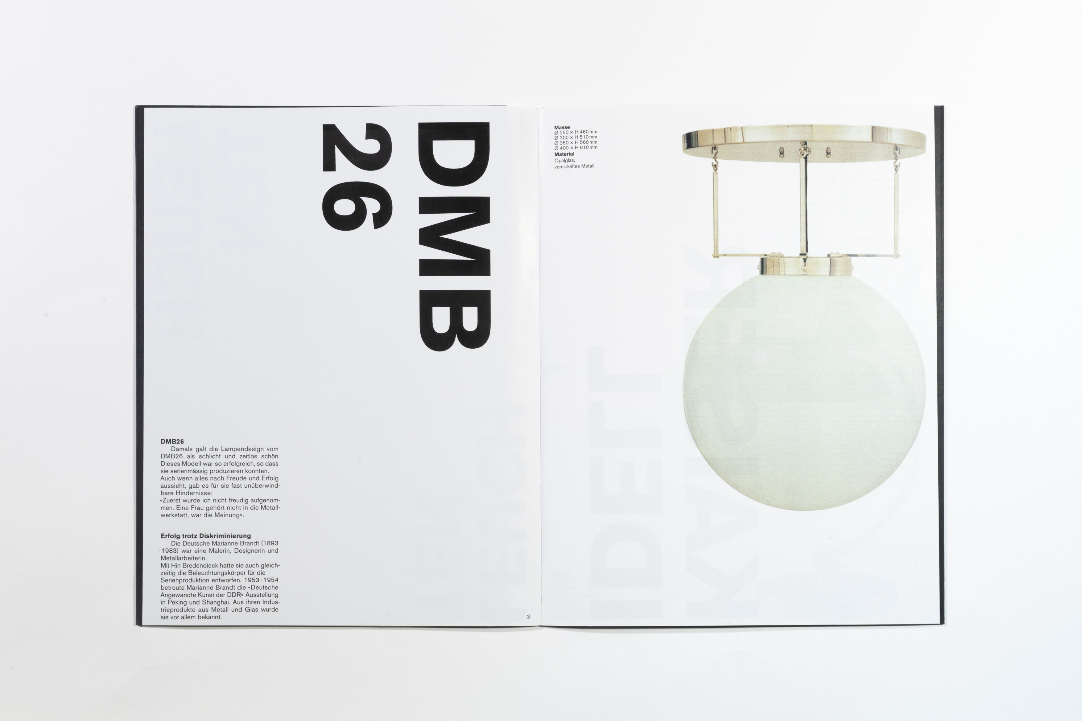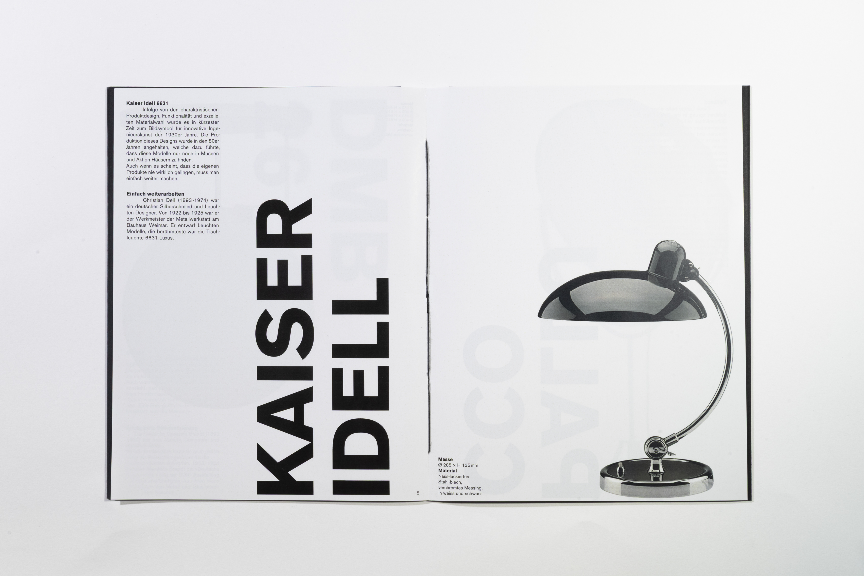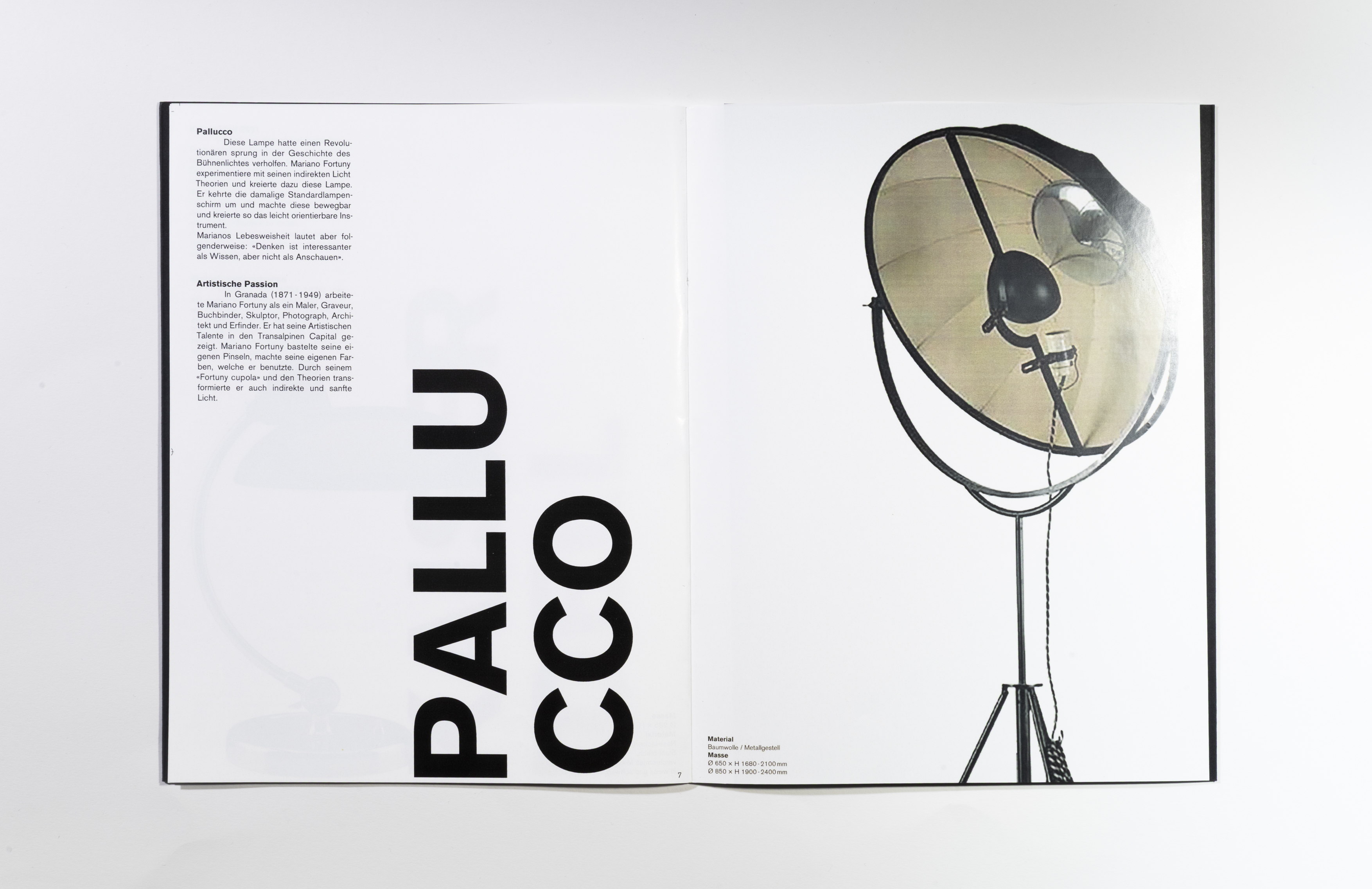 Durch Recherche und Entwurfsprozess kann man ein Layout designen, das Designerleuchten passend und anregend darstellt. Dabei wurde Wert auf eine klare Struktur, Typografie und Bildanordnung gelegt. Der kompakte Katalog zeigt drei verschiedene Lampen, jede auf einer eigenen Doppelseite mit Hintergrundgeschichte und einem klaren, durchgängigen Aufbau. Die jeweiligen Designer werden in einer eigenen Infobox vorgestellt. Das Projekt verbindet Informationsdesign mit einer ästhetischen Präsentation und schafft einen ruhigen, wirkungsvollen Gesamteindruck. Das Dossier folgt das Ziel, Interesse und Bedeutung für Designobjekte, insbesondere für Leuchten, zu wecken.